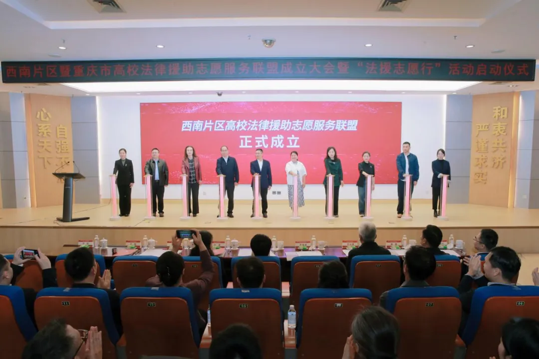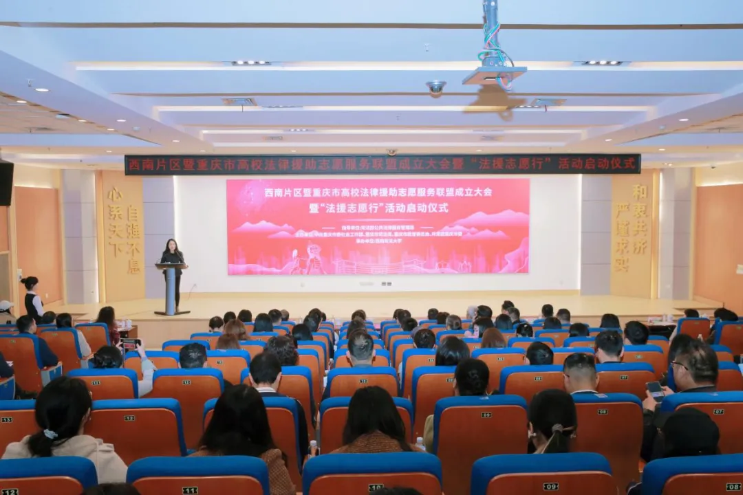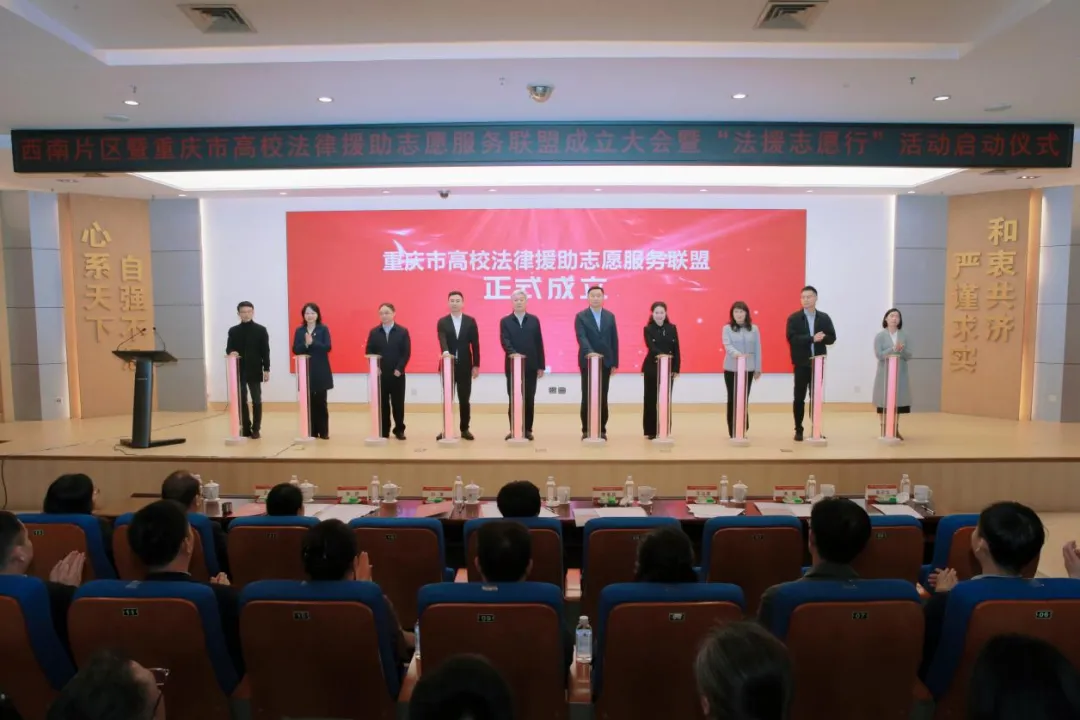 本次活动由司法部公共法律服务管理局指导,重庆市委社会工作部、重庆市司法局、重庆市教育委员会、共青团重庆市委主办,西南政法大学承办,司法部公共法律服务管理局、川渝黔滇藏五省(区、市)司法行政部门及相关部门负责人,以及西南政法大学、重庆邮电大学、重庆工商大学、四川外国语大学负责人,西南五省(区、市)高校师生代表等170余人参加,共同见证西南片区高校法援志愿服务迈入跨区域协同、聚合化发展的全新阶段。