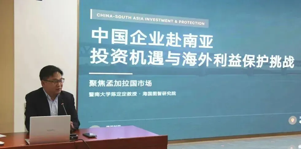 作为本次调研的核心环节之一,天河海保大讲堂(第四讲)如期开讲。暨南大学国际关系学院教授、博士生导师陈定定以《中国企业赴南亚投资机遇与海外利益保护挑战》为题,结合孟加拉国市场实践,分析了南亚地缘政治格局与投资风险。广东海外联谊会第八届理事会理事、广东省驻尼泊尔经贸代表处首席代表、尼泊尔粤商会会长杨鹏以《中国企业在南亚地区投资发展的法律风险防范及解决措施》为题,用尼泊尔一线案例分享了政局变动、政策反复、社会矛盾等复杂环境下的企业应对之道。