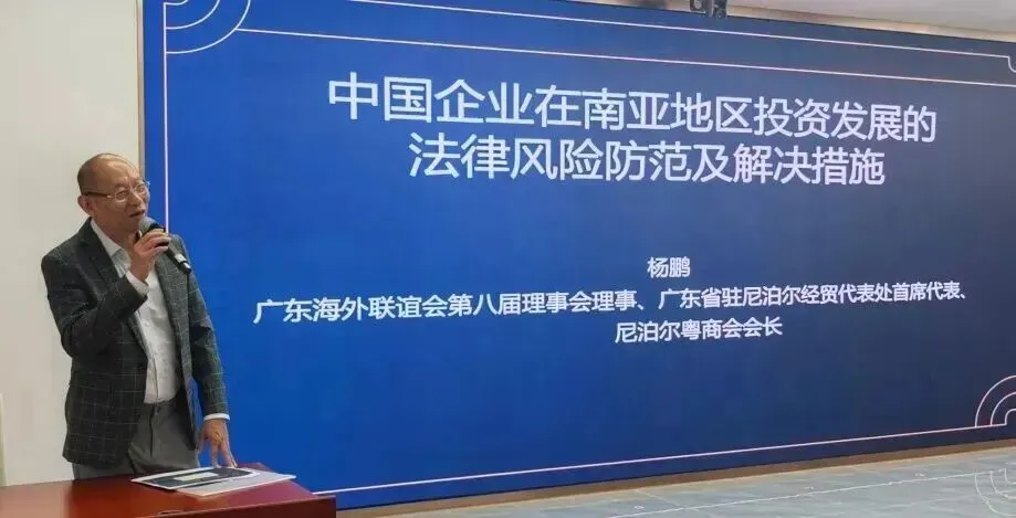 广东海外联谊会第八届理事会理事、广东省驻尼泊尔经贸代表处首席代表、尼泊尔粤商会会长杨鹏授课