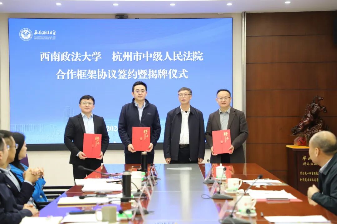 唐学兵院长表示,近年来,杭州中院坚持以习近平法治思想为指引,紧扣超大城市治理需求,聚焦互联网法治、数字经济等新兴领域,案件质效与司法创新走在全国前列。西南政法大学法学底蕴深厚,人才培养质量领先,是值得信赖的学术高地和人才智库。此次签约意义深远,期待双方在涉外法治、科技法治、知识产权、商事调解等方面深化协作,为法治建设夯基固本,为公平正义保驾护航。