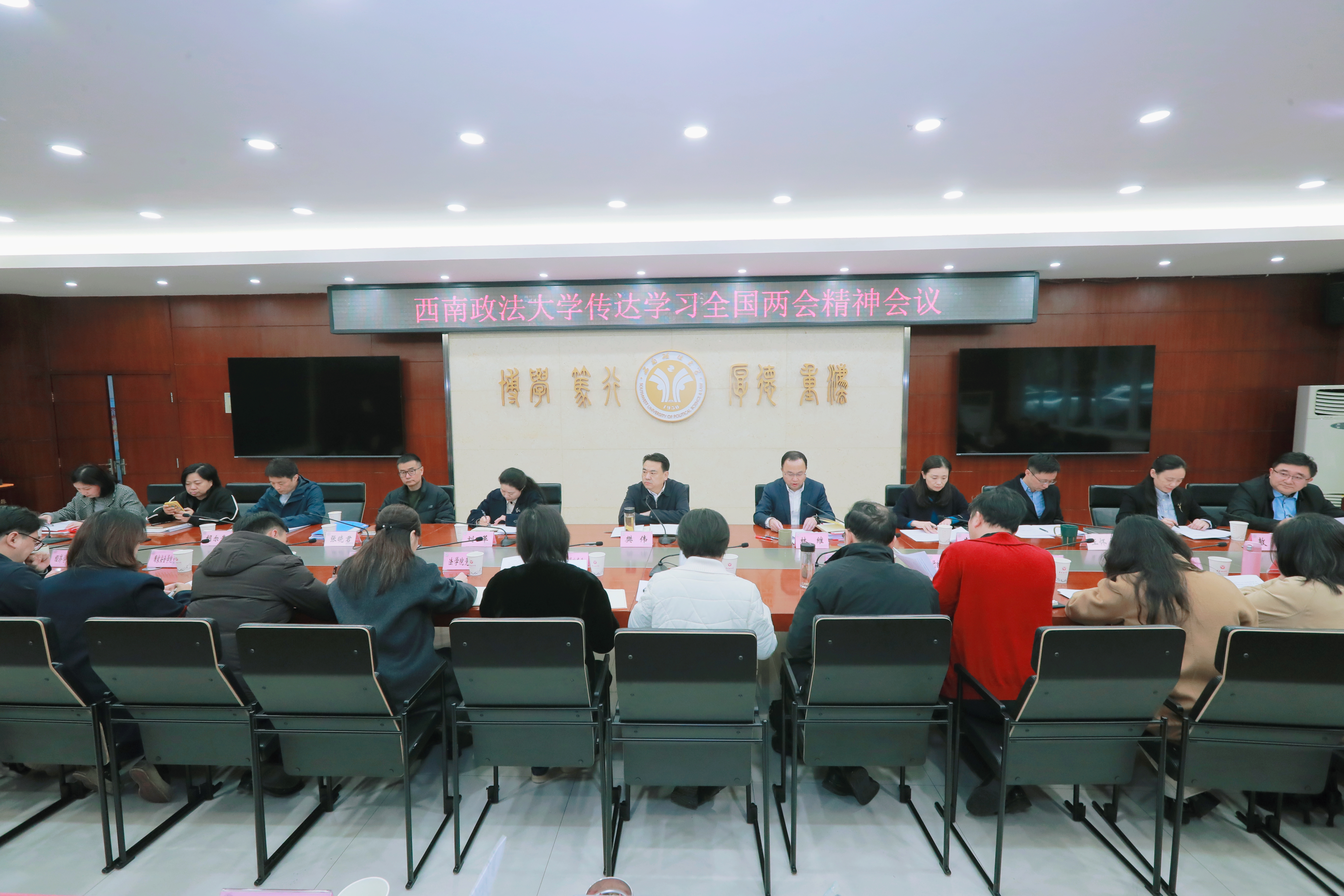 会议指出,全国两会是在“十四五”规划圆满收官、豪情满怀迈入“十五五”新征程的关键节点召开的一次重要会议,对于确保基本实现社会主义现代化取得决定性进展,书写中国式现代化的壮丽篇章,具有十分重要的意义。全校师生要深入学习贯彻习近平总书记在全国两会期间发表的一系列重要讲话精神,把思想和行动统一到党中央决策部署上来,认真落实市委的工作要求,确保“总书记有号令、党中央有部署,重庆见行动、西政抓落实”。